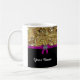 PERSONALIZE this stylish elegant girly glittery sparkly gold swirly modern abstract beaded & pearl bling pattern and hot pink magenta bow and ribbon, on black with your own text, name or monogram, initials .