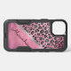 On this trendy phone cover is a shimmery silver ribbon that vertically divides the glittery silver leopard print and the hot pink glossy backdrop where you can personalize it to make it uniquely your own. Glam chic vibes.