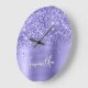 Glittery Periwinkle Foil Name Large Clock