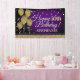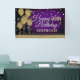 Fun banner sign for indoors or out, featuring some glam metallic balloons and glittery confetti on a rich textured deep purple background for your personalized birthday banner.