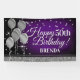 Fun banner sign for indoors or out, featuring some glam metallic balloons and glittery confetti on a rich textured deep purple background for your personalized birthday banner.