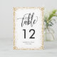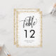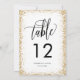 This trendy wedding reception table number features a shimmery border of faux gold glitter and can be personalized with your wedding monogram and date!