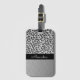 A glittery silver and black leopard print with a black ribbon where you can personalize it along with a gold metallic polish finish below for extra glam. Stylish trendy vibes.
