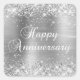 Glittery Silver Foil Happy Anniversary Square Sticker