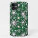 Glittery silver green festive snowflake pattern Case-Mate iPhone case