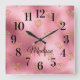 Glittery Sparkling Blush Pink Gold Monogram Name Square Wall Clock
