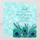 Glittery Teal Blue Peacock Feathers 50th Invitation