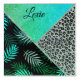 A collage including a shimmery teal leopard print design joined with a vibrant teal green ombre glittery pattern where you can customize it along with tropical ferns creating trendy glam vibes.