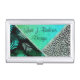 A collage of shimmery teal leopard print design joined with a vibrant teal green glittery pattern where you can customize it with a name or logo along with tropical ferns creating trendy glam vibes.