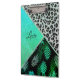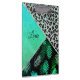 A collage of teal a leopard print design joined with a vibrant teal green glittery pattern where you can customize it along with tropical ferns creating trendy glam vibes.