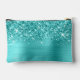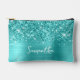 Glittery Turquoise Blue Glam Script Name Accessory Pouch