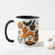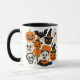 Make your Halloween mornings magical with this whimsical and outrageous Halloween mug design! Featuring a glittery cast of iconic characters—from smiling pumpkins and spooky ghosts to mischievous black cats, cheerful skeletons, scarecrows, and fluttering bats—this design bursts with bold orange, black, and white sparkle.