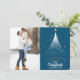 Glittery White Christmas Tree Blue Two Photo Holiday Card