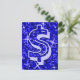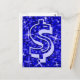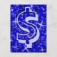 Postcard with a modern design featuring stars scattered over a stylised "sequin look" pattern background and a dollar sign '$' in shades of blue. Can be used as a background for your own text, images and ideas. Please note this is a printed digital art image, it does not shine or contain real glitter or sequins.