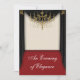 Elegant red carpet, luxurious black drapes with a beautiful ornate gold chandelier school prom invitation.
