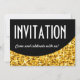 Invitation with a modern design featuring stars scattered over a stylised "sequin look" curved shape in shades of yellow gold set against a black background with 'Invitation' 'come and celebrate with us!' written in white. Can be used as a background for your own text, images and ideas. The text can easily be changed using the template provided or click the 'Customize It' button to make further alterations. Please note this is a printed digital art image, it does not shine or contain real glitter or sequins.