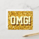 Postcard with a modern design featuring stars scattered over a stylised "sequin look" pattern background and 'OMG!' in shades of yellow and brown. Can be used as a background for your own text, images and ideas. Please note this is a printed digital art image, it does not shine or contain real glitter or sequins.