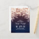 Romantic soft pink and dark blue save the date postcards with starry strings of lights
