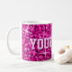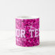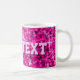 Mug with a modern printed design featuring stars scattered over a stylised "sequin look" pattern background in shades of pink. Can be used as a background for your own text, images and ideas. Please note this is a printed digital art image, it does not shine or contain real glitter or sequins.