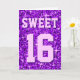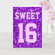 Greetings card with a modern printed design with stars scattered over a stylised "sequin look" pattern background and 'Sweet 16' written in shades of purple and lilac. A customizable design for you to personalise with your own text, images and ideas. Please note this is a printed digital art image. The product does not shine or contain real glitter or sequins.
