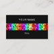 Business card with a modern design featuring stars scattered over stylised "sequin look" rainbow-coloured stripes on a black background. A customizable design for you to personalise with your own text, pictures and ideas. Please note that this is a printed digital art image and does not contain real glitter or sequins