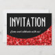 Invitation with a modern design featuring stars scattered over a stylised "sequin look" curved shape in shades of red set against a black background with 'Invitation' 'come and celebrate with us!' written in white. Can be used as a background for your own text, images and ideas. The text can easily be changed using the template provided or click the 'Customize It' button to make further alterations. Please note this is a printed digital art image, it does not shine or contain real glitter or sequins.