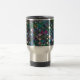 Travel/commuter mug with a stylish, colourful, diagonal glass block tiled look design in cool tones. Can be used as a background for your own text, images and ideas. Please note this is a printed digital art image. it does not shine or contain real sparkles.