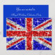 Fly the UK flag with this fun Union Jack design with stars scattered over a stylised "sequin look" pattern background. Invitation with a red, white, silver grey and blue customizable design for you to personalise with your own text, pictures and ideas. Please note this is a printed digital art image. The product does not shine or contain real glitter or sequins.