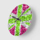 Fly the UK flag with this fun Union Jack design featuring stars scattered over a stylised "sequin look" pattern background. Wall clock with a lime green, white, silver grey and pink customizable design for you to personalise with your own text, pictures and ideas. Other style options available. Please note this is a printed digital art image, it does not shine or contain real glitter or sequins.