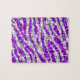 Jigsaw puzzle with a modern design featuring stars scattered over a stylised "sequin look" zebra stripe pattern background. A customizable design in shades of purple and silver grey for you to personalise with your own text, pictures and ideas. Please note this is a printed digital art image, it does not shine or contain real glitter or sequins.
