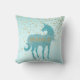 Glitzy Aqua Sparkle Unicorn Throw Pillow