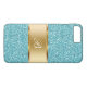 Glitzy monogram smartphone case with monogram initial you can personalize online, gold colored design element and simulated glitter pattern, all digitally printed on the cover. Carry your cellphone covered in bling.