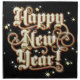 Set of 4 20” x 20” cloth dinner napkins with an image of the holiday sentiment “Happy New Year!” in sparkling glitzy letters amid gleaming gold stars on black. See matching paper cocktail napkin and coasters. See the entire New Year Napkin collection under the HOME category in the HOLIDAYS section.