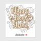 4” x 4” custom-cut vinyl sticker with an image of the holiday sentiment “Happy New Year!” in sparkling glitzy letters amid gleaming gold stars. See matching square sticker, 5” x 7” greeting card, 5.25” x 5.25” invitation, label, confetti and wrapping paper. See the entire New Year Sticker collection under the CARDS & STICKERS category in the HOLIDAYS section.
