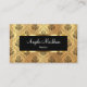 Classy and glitzy real estate business card design created with an elegant floral damask pattern overlaid on simulated gold metallic artwork background with your name or company featured on the front. Designed for a Realtor, Broker, property manager, or realty services.