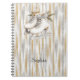 Glitzy Silver Gold Stripes White Ice Skate Notebook