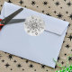Elegant Winter envelope or favor stickers done in an silver tone and white sparkly background, with graphic artwork of a big silver tone and diamond snowflake jewel. Very pretty way to finish off your winter wedding invitations or holiday cards.