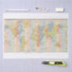 This design features a public-domain map of the world with the standard time zones for each region color-coded. There are twenty-four time zones displayed, with non-standard half-hour time zones also listed. The map shows all of the world's major countries: it shows the continents of Asia, Africa, North America, South America, Europe and Australia. The time zone of Universal Time Coordinated (UTC) is displayed in the center of the map, while earlier time zones are shown to the left and later time zones are shown to the right.