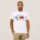 Customizable shirt design with illustration of world map with colorful continents. You can personalize it with your own text or choose a different shirt style and color.