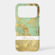 Very stylish teal and gold marble look cell cover with an editable text.. You can use one initial or several, a name or even a word or short saying.