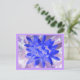 This postcard features a beautiful and highly detailed photo of a bunch of glory of the snow (chionodoxa) flowers, taken using macro photography, resulting in a stunning image. The photograph has been artificially coloured resulting in shocking blue flowers against a misty pale purple background of leaves. A pale purple frame completes the design.