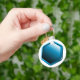 Glossy Blue Hexagon Icon Modern Geometric Keychain
