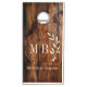 Glossy Stained Dark Wood Leaf Wedding Monogram Cornhole Set
