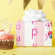 Glossy Wrapping Paper Pink Stripe Happy Birthday