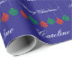 Glossy wrappingpaper with personalized name. Red and green colored Merry Christmas lights wrapping paper for men women and kids. Classy Holiday design with colorful hanging light bulb balls and custom seasons greeting message. Personalizable with name of adult or child. Fun giftwrap with Xmas decorations. Purple or custom background color. Elegant typography letters.