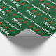 Glossy wrappingpaper with personalized name. Red and green colored Merry Christmas lights wrapping paper for men women and kids. Playful Holiday design with colorful hanging light bulb balls and custom seasons greeting message. Personalizable with name of adult or child. Fun giftwrap with Xmas decorations. Dark green or custom background color. Funny typography letters.