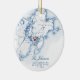 This beautiful ceramic Gloucester destination wedding Christmas Ornament is perfect to celebrate a couple's first Christmas as Mr. and Mrs.! Printed on durable ceramic, this navy blue map ornament makes a lovely wedding gift that will be cherished for years. You can move the heart and the map by clicking "Edit using Design Tool" in the "Personalize it" Menu.