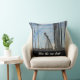 A pillow adorned with a graphically stunning watercolor painting of rows of palm trees silhouetted against an artistic sky inspired by Vincent van Gogh's "The Starry Night."