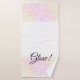 Glow design towel set. Soft pastel sparkles in a light rainbow. Glow can be customized into your text
