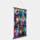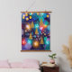 Beautiful wood topped wall hanging tapestry featuring Glowing Christmas Lights Bokeh Golden Trees design - perfect for Christmas decor!